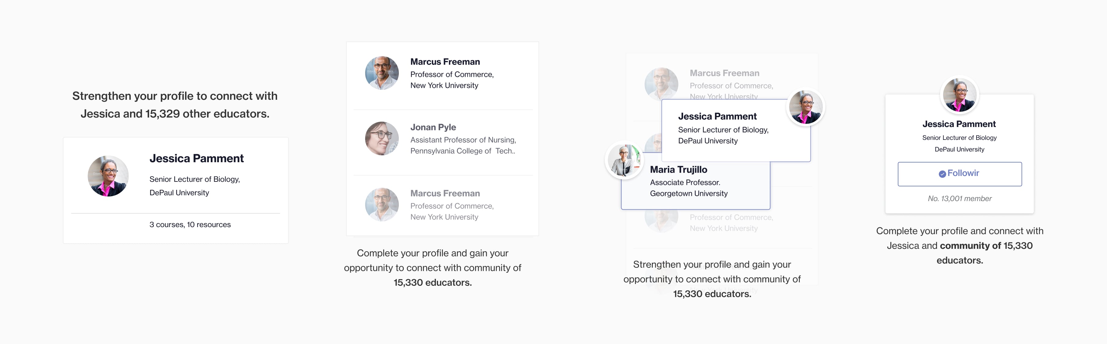 With the foundation of more educator profiles completed, it later on facilitated the grow of the educator community in our product, the engagement among the educators (follow), and the high-quality contents contributed by the community.