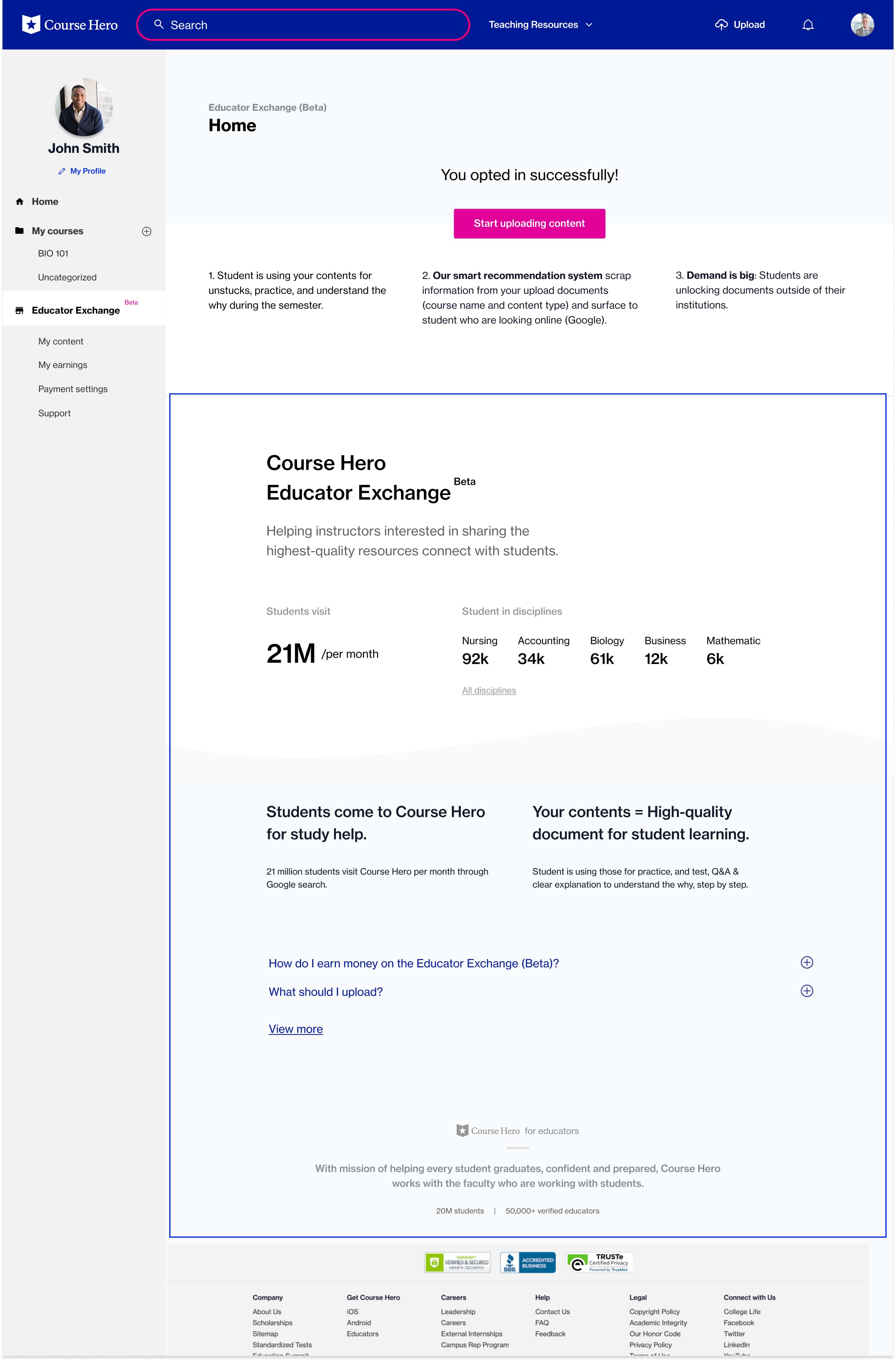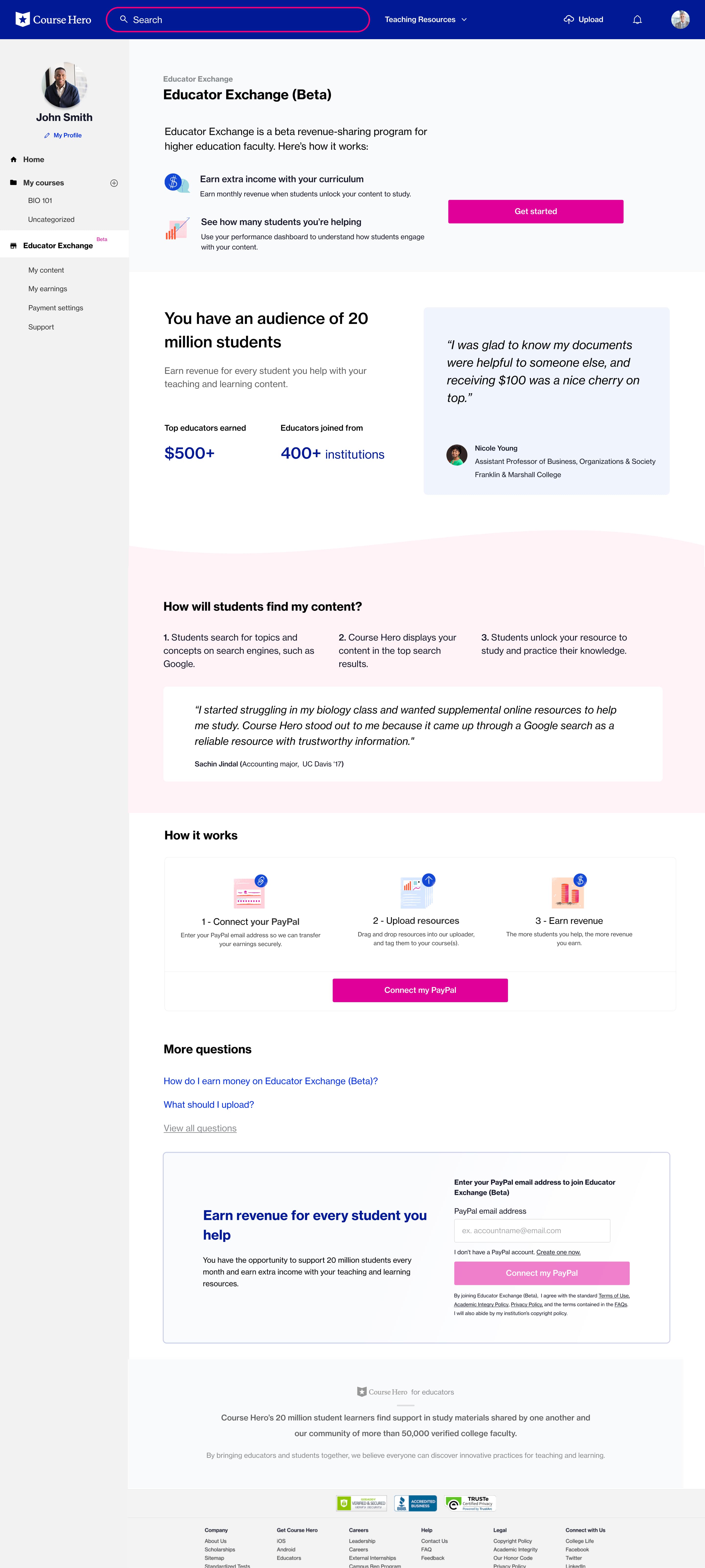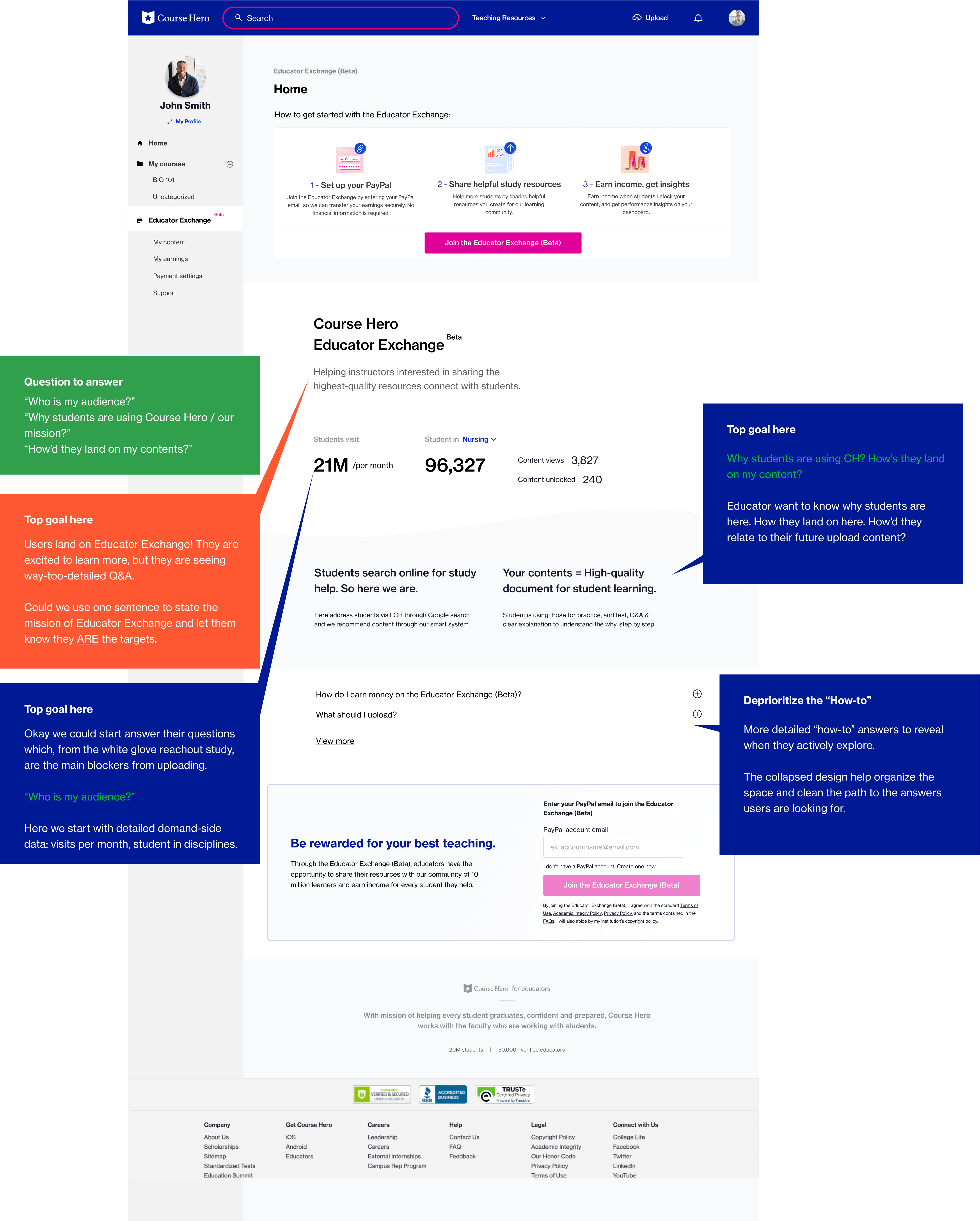 Use a new footer design to connect Course Hero core mission and build trust: how’d your content will help students' learning?