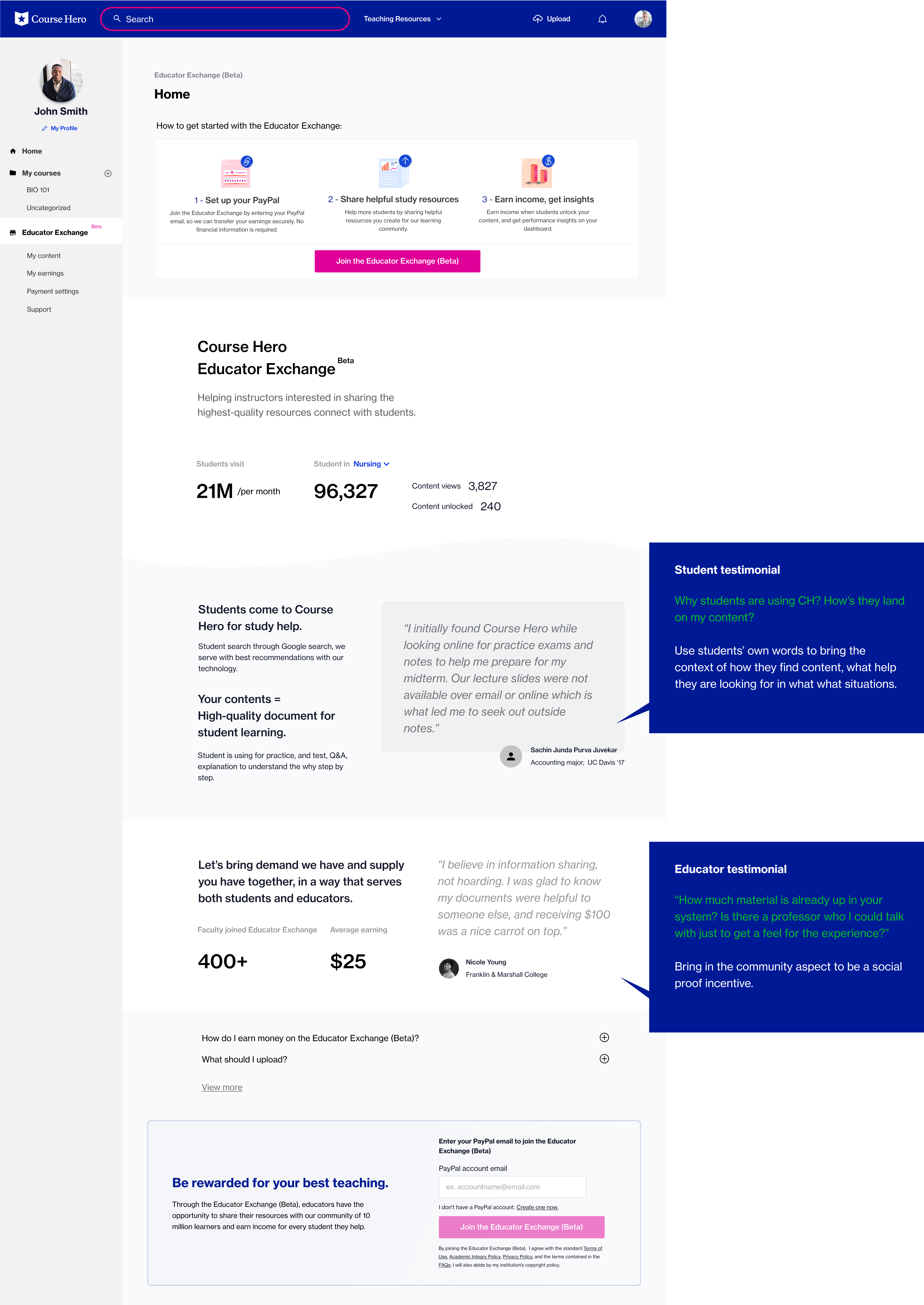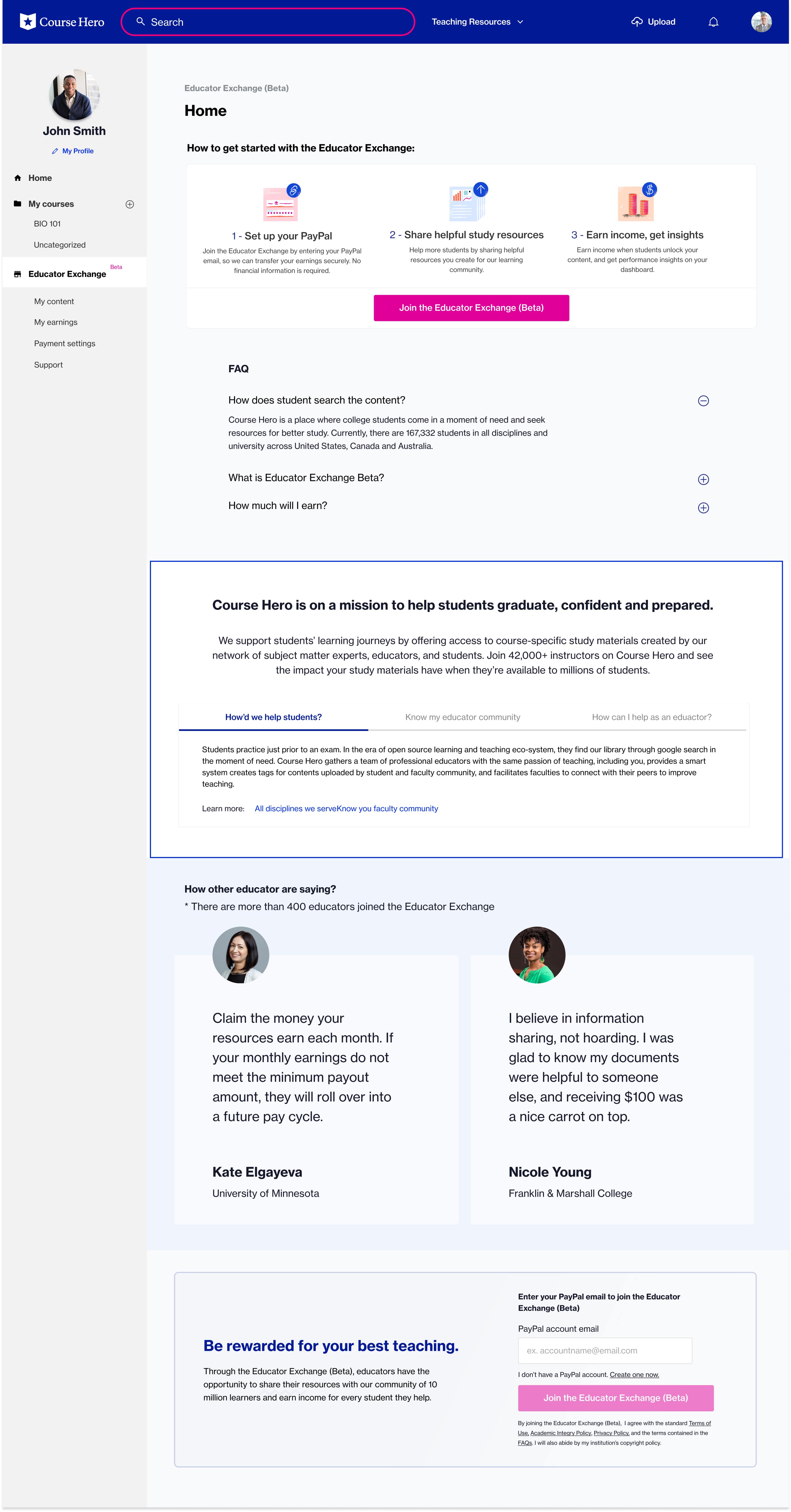 Condensed the area of “What is Educator Exchange” within one section. (We observed users don’t want to read and don’t click video to understand.)